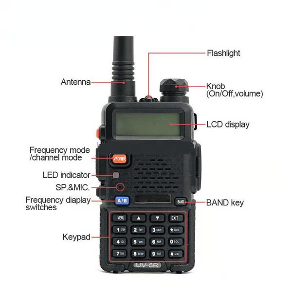 The UV-5R Dual Band Two Way Ham Radio Transceiver is your ultimate solution for reliable, long-range communication. Whether you're exploring the great outdoors, managing an event, or preparing for emergencies, this portable handheld walkie talkie ensures you stay connected with crystal-clear audio and robust performance.