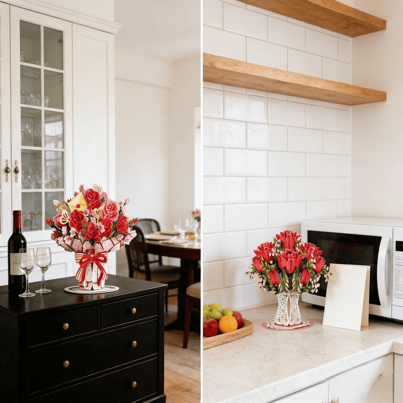 💐 Pop-up magic + decor 2-in-1:Laser-cut 3D flower blooms when opened — detach the bouquet to turn it into lasting home decor!