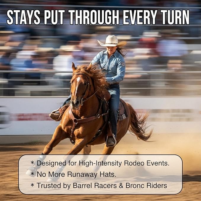 One of the biggest challenges in the rodeo world is keeping hat securely in place during high-intensity runs. Whether you're barrel racing, riding saddle bronc, or roping, the last thing you want is your hat flying off mid-ride.