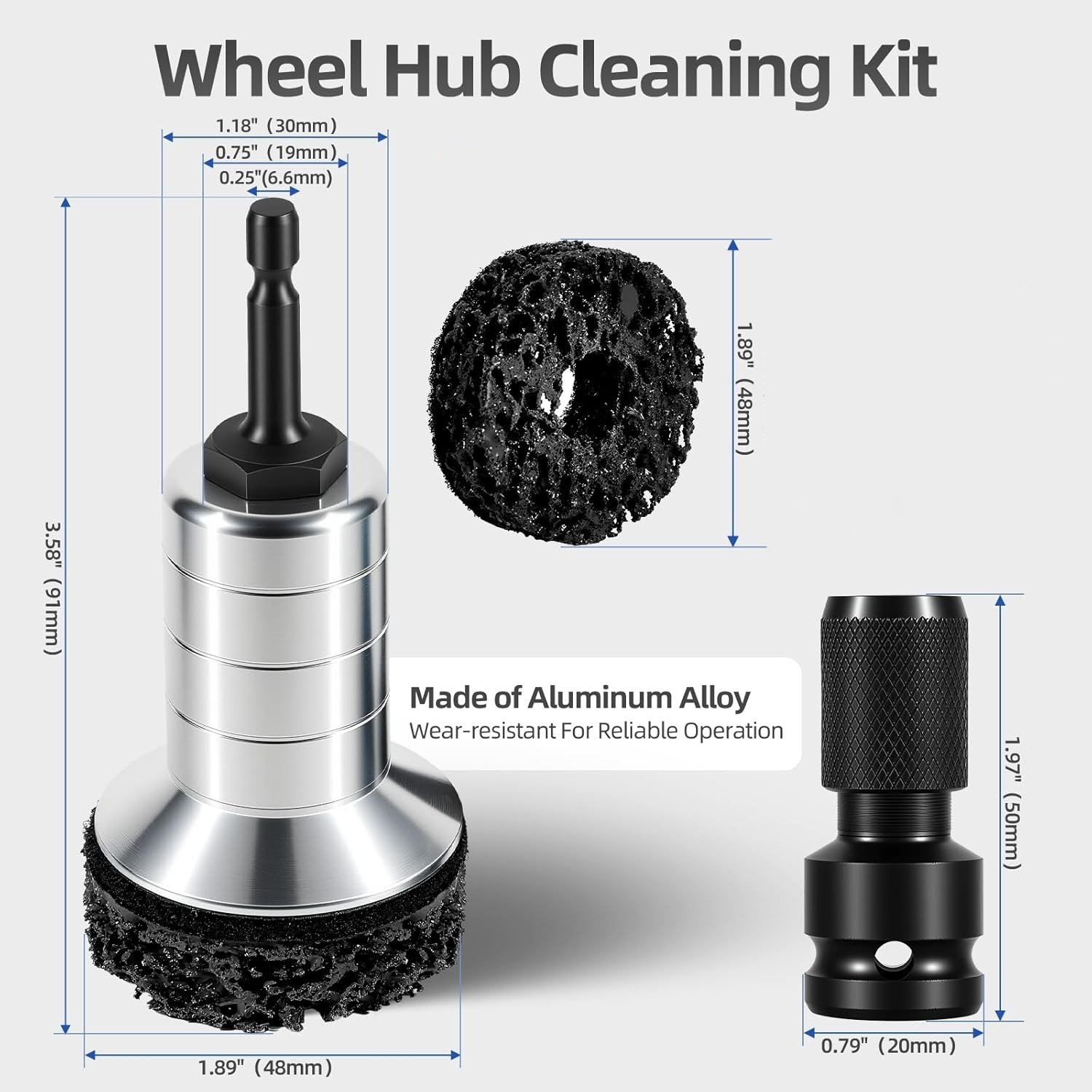 This Professional Hub Cleaning Kit connects to your drill or impact wrench to remove years of rust in seconds—so your wheels mount flat, tight, and safe.