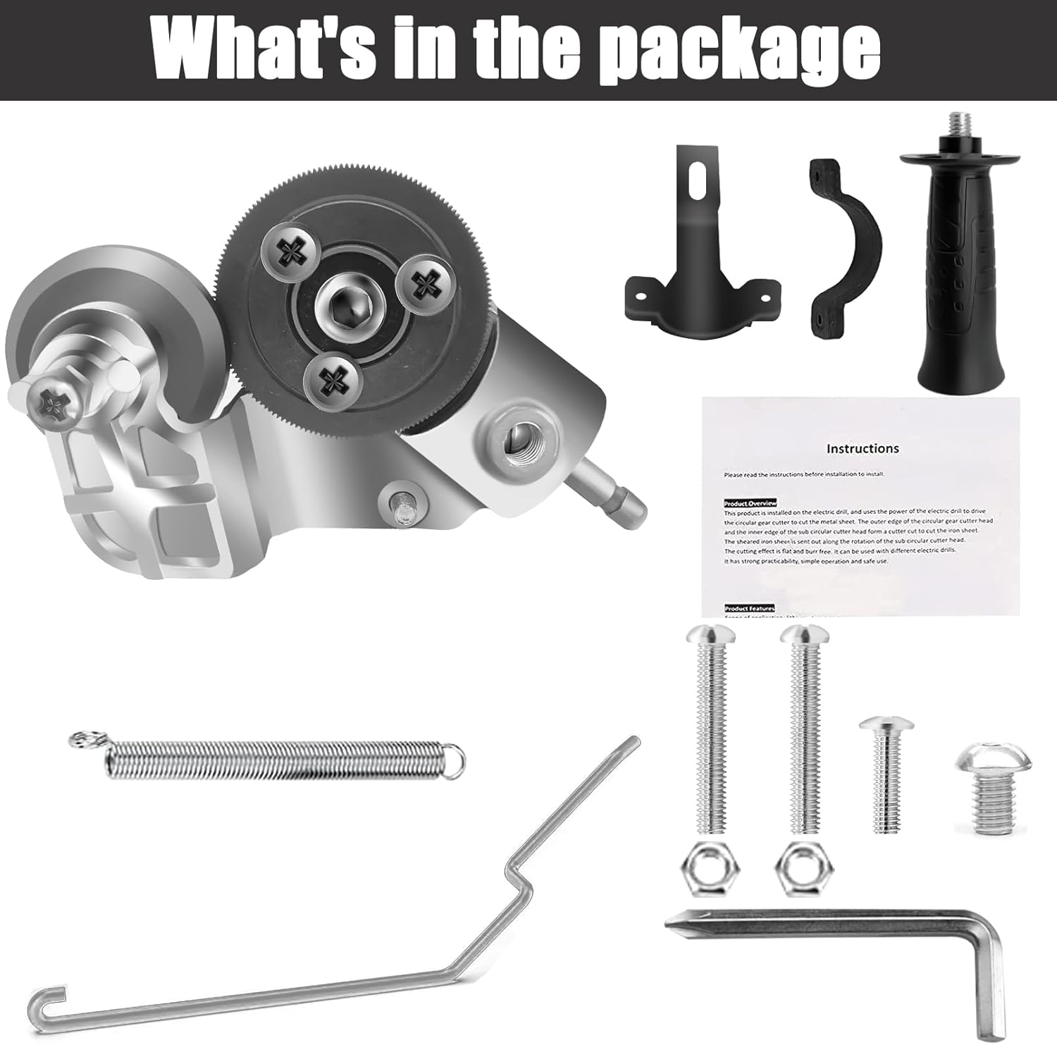 This sheet-metal cutter attaches easily to most standard electric drills, adding convenience and versatility to your existing toolkit.
