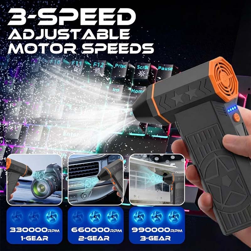 The 2025 upgraded motor achieves up to 990.000 RPM. nearly 20x faster than older models. Equipped with 13 durable metal fan blades. it delivers powerful. concentrated airflow for faster and more efficient cleaning. Despite the boost in speed and performance. the new design reduces power consumption to just 15%. making it both powerful and energy-efficient.